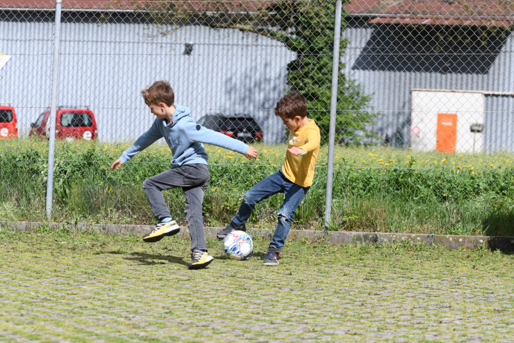 - Spielstrasse mit verschiedenen Angeboten zum Spielen und Ankommen (Fussball, Hüpfburg, Bücherecke…)